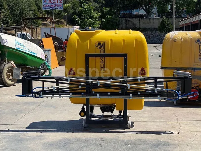 Выполненные в навесном исполнении полевой опрыскиватель PULVASOL1000 (3-ые, трёх позиционные форсунки) модельного ряда MOSH предназначены для внесения в почву жидких минеральных удобрений и средств защиты полевых культур от болезней и вредителей. Работы выполняются способом сплошного опрыскивания растений через расположенную на штанге навесного агрегата систему форсунок.